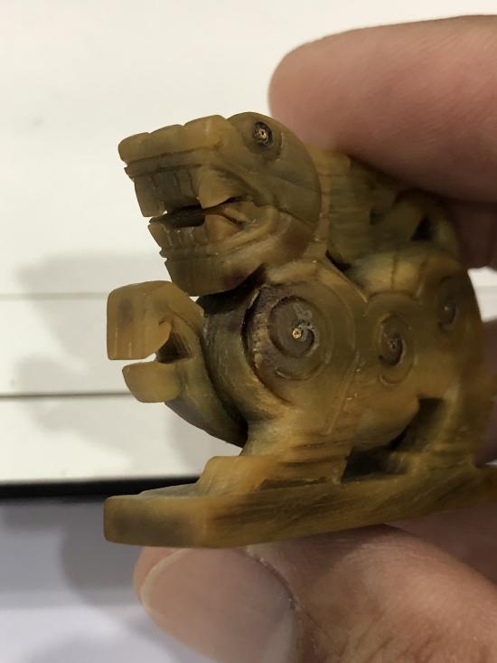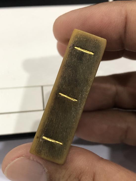 สิงห์เขาแกะ ไม่ทราบที่ ฝังตะกรุดทองคำแท้ ที่ใต้ฐาน3ดอก ที่หวัญ 6 ดอก ที่ตา 2 ดอก