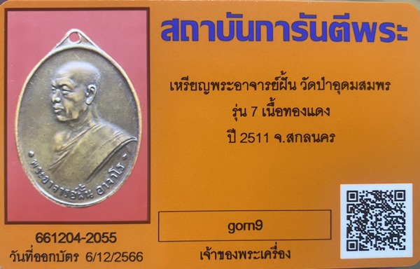 +_+_เหรียญพระอาจารย์ฝั้น รุ่น7 วัดป่าอุดมสมพร สกลนคร ปี 2511 เนื้อทองแดง พร้อมบัตรรับรองครับ_+_+