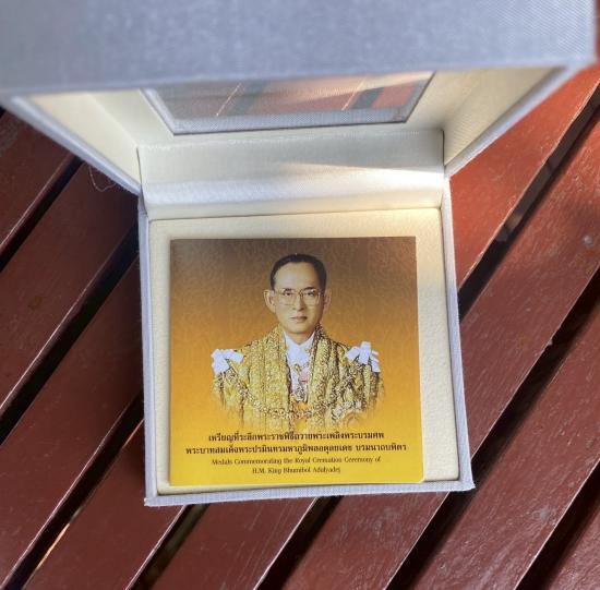 วัดใจขาดทุนเหรียญที่ระลึกในหลวงรัชกาลที่เก้า พิธีถวายพระเพลิง 2526 พร้อมกล่องสวย unc