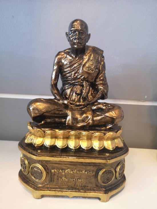พระบูชา หลวงพ่อเริ่ม ปรโม สีทองเหลืองโบราณ ก้นอุดผง หน้าตัก 6 นิ้ว <285>
