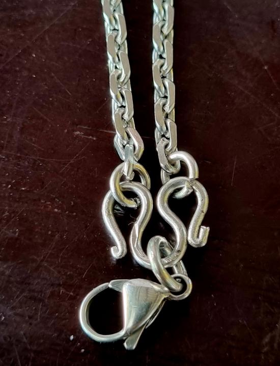 สร้อยคอแสตนเลส ตราลูกศร งานเก่า ลายคชกริช ยาวตลอดเส้น 30 นิ้ว คล้องพระ 9 องค์ ++ แถมก้ามปูสปริง