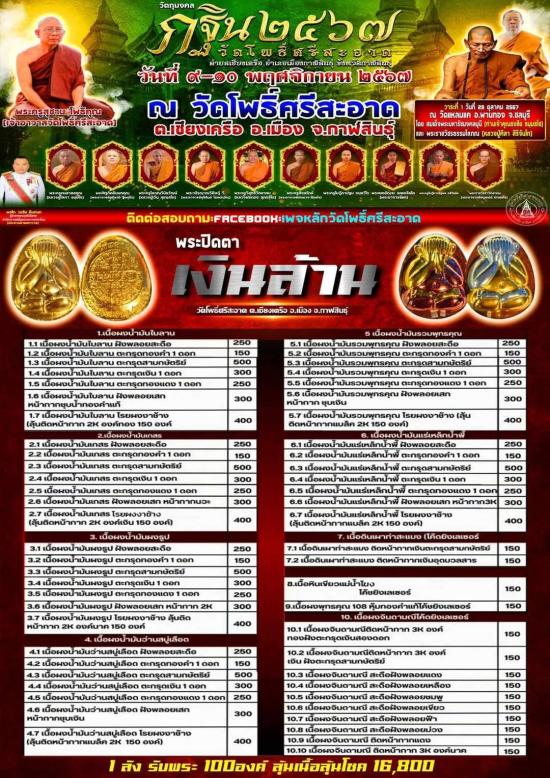 - พระปิดตาจัมโบ้ ๒ เงินล้าน งานกฐิน ปี 2567 หลวงปู่ศิลา สิริจันโท วัดโพธิ์ศรีสะอาดแกเปะ เนื้อผงน้ำมันว่านสบู่เลือด ฝังพลอยเสกหน้ากากชุบเงิน เลข 266 สวยๆ ครับ รายการที่ 4.6 ราคาวัด 300 บาท