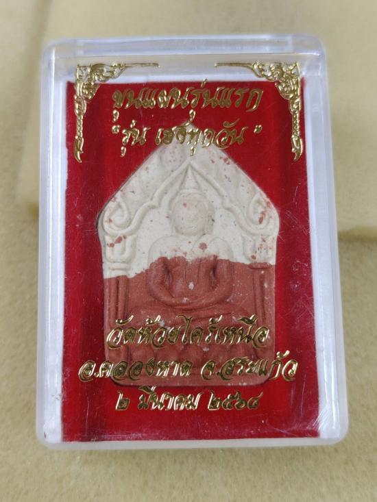 A4845.พระขุนแผนรุ่นเเรก วัดห้วยไคร้เหนือ รุ่น เฮงทุกวัน เนื้อ 2 สี ฝังตะกรุดด้านหลัง กล่องเดิม