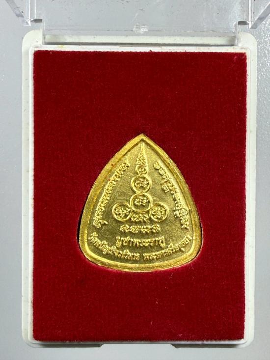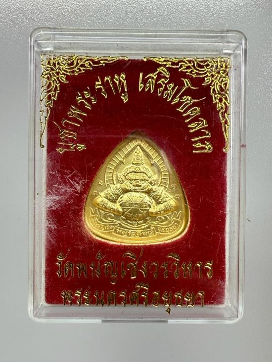 วัดใจ 130 ... เหรียญพระราหู เสริมโชคลาภ วัดพนัญเชิง จ.อยุธยา เนื้อกะไหล่ทอง กล่องเดิม