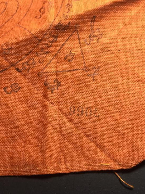 ผ้ายันต์มงกุฏพระเจ้า ปั้มตรายาง หลวงพ่อวิเชียร วัดเนินสุทธาวาส ชลบุรี หมายเลข 9904 |