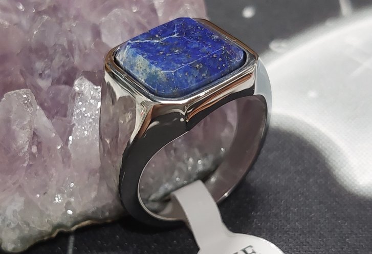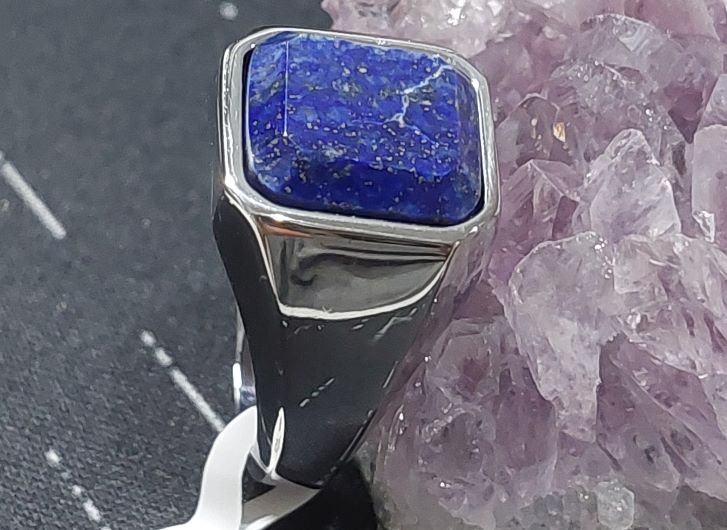 แหวนหัวลาพิสลาซูลี ตัวเรือนแหวนเป็นสแตนเลสขัดเงาแข็งแรงทนทาน ขนาดแหวนเบอร์10