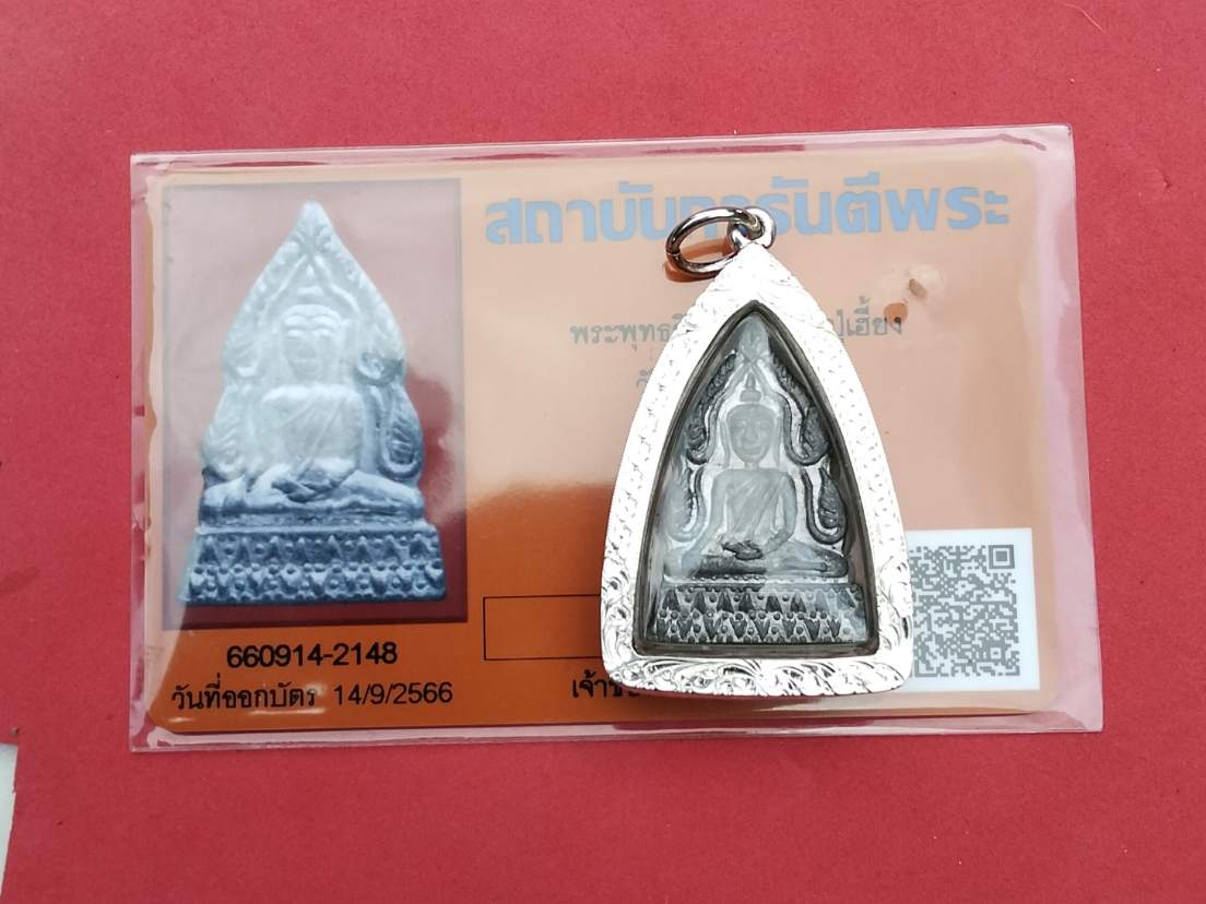 ราคาวัดใจ พระพุทธชินราช หลวงปู่เฮี้ยง วัดป่า ชลบุรี ปี 2505 เลี่ยมกรอบเงิน บัตรการันตี