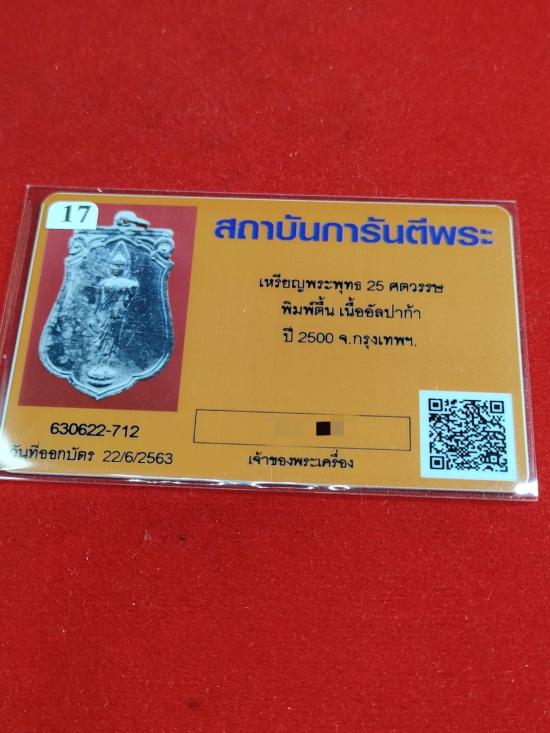 เหรียญพระพุทธ 25 ศตวรรษ พิมพ์ตื้น เนื้ออัลปาก้า ปี2500 กรุงเทพ (17) พร้อมบัตรรับรอง |