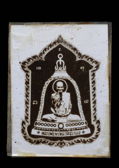 รูปหลวงพ่อพรหม วัดช่องแค หลังตราปั๊ม ไม่ทราบปีจัดสร้าง ภาพมีปรอท