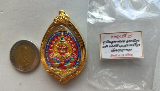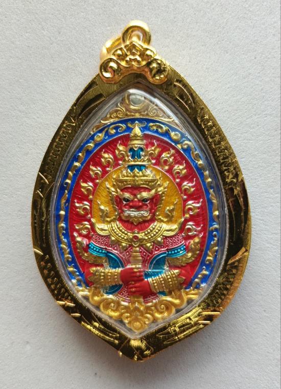 วัดใจเคาะเดียวแดงจ้า เหรียญท้าวเวสสุวรรณ พระอาจารย์เลี้ยง วัดจอมเกษ เนื้อชุบเงินลงยาเรืองแสง เลี่ยมกรอบชุบทอง เคาะเดียวแดงจ้า