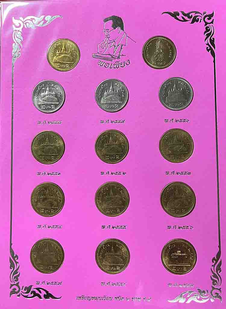 แผงเหรียญ ๒ บาท หมุนเวียน ร.๙ ต้น ร.๑๐ พ.ศ.๒๕๔๘-๒๕๖๑