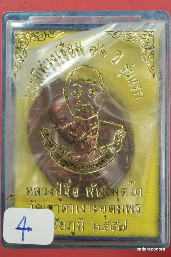 เหรียญห่วงเชื่อมหลวงปู่จื่อ รุ่นแรก ปี 2557 เนื้อทองทองแดง ตอกแจก หมายเลข 4