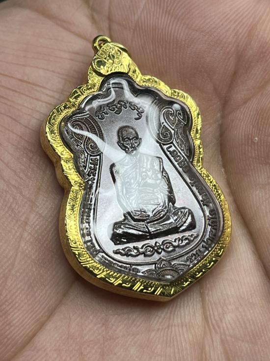 เหรียญไตรมาส59 เนื้อทองแดง หลวงพ่อรวย วัดตะโก จ.อยุธยา เลี่ยมกรอบทองคำแท้พร้อมใช้