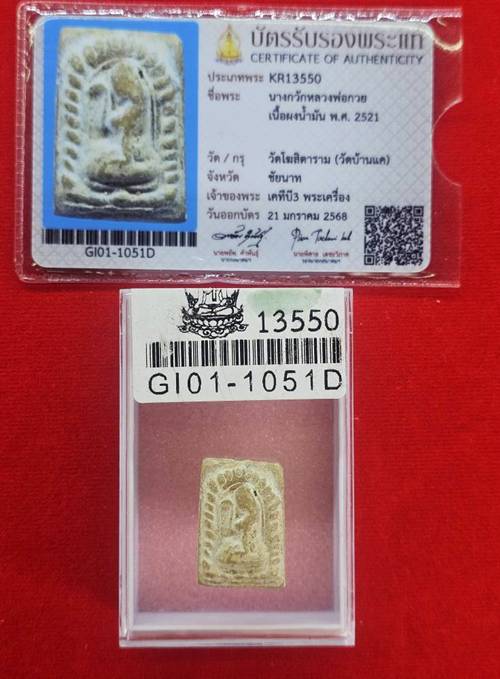 นางกวัก หลวงพ่อกวย วัดโฆสิตาราม เนื้อผงน้ำมัน ปี2521 พร้อมบัตรรับรองสมาคม
