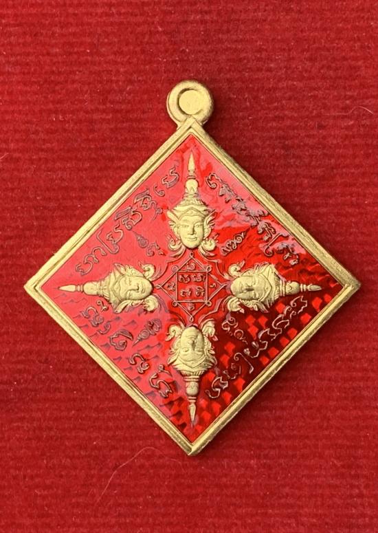 เหรียญพระพรหมสี่หน้า รุ่นยอดเมตตา หลวงปู่ศิลา สิริจันโท เมตตาอธิษฐานจิต เนื้อทองทิพย์ลงยาแดง |