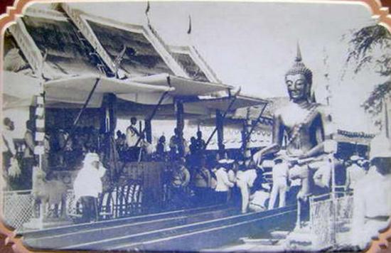 ภาพพิธีอัญเชิญ พระพุทธชินราชจำลอง จากวัดพระศรีรัตนมหาธาตุ พิษณุโลกมาประดิษฐาน ณ วัดเบญจมบพิตร ปี 2453