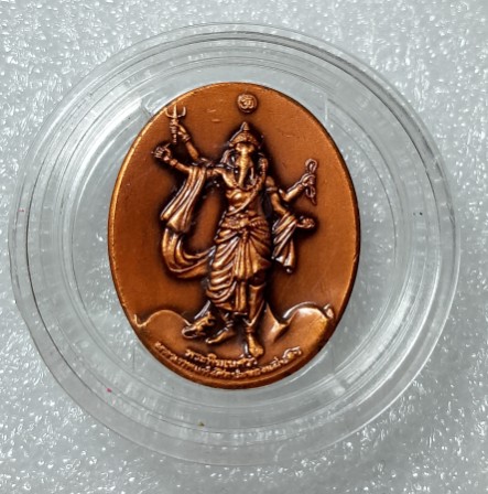 ~~เหรียญพระพิฆเนศ (workpoint) ปางมหาเทพ รุ่นเฉลิมพระเกียรติ 80พรรษา ในหลวง รัชกาลที่9 ปี50 สร้างโดย คุณปัญญา บ.เวิร์คพอยท์ ---พร้อมหนังสือกำกับหมายเลข 80452 ตลับเดิมสวยใส