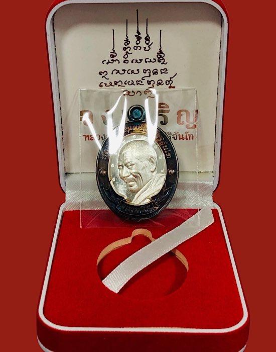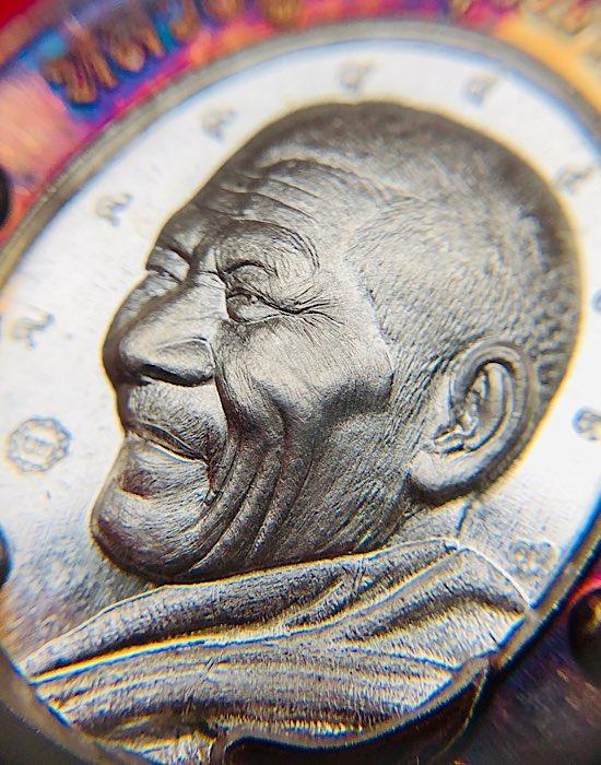 หลวงปู่มหาศิลา จงเจริญ เนื้อเงินมวลสาร รายการพิเศษ ตอก9 รอบ 1 ใน100 เหรียญ ผิวสวยๆจมูก100 เลข1853กล่องเดิม พระสวยแชมป์ๆ