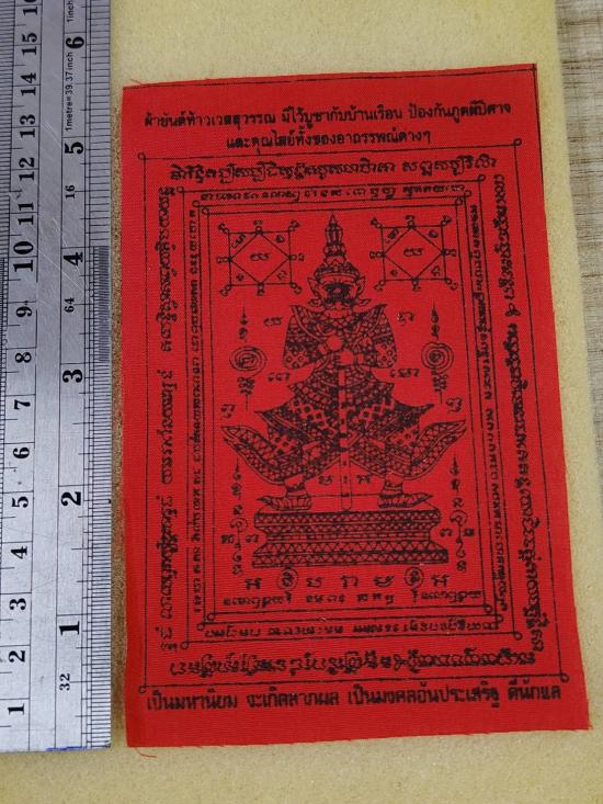 A4905.ผ้ายันต์ท้าวเวสสุวรรณ ผืนแดง ขนาดพกพา เคาะเดียวเเดง