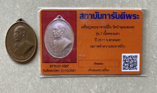 เคาะเดียวแดง เหรียญพระอาจารย์ฝั้น อาจาโร รุ่น7 พร้อมบัตรการันตี