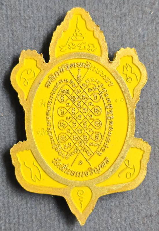 เหรียญพญาเต่าเรือน รุ่น"ชนะจน" หลวงปู่หลิว ปัณณโก วัดสี่แยกเจริญพร นครปฐม เนื้อทองระฆัง เพ้นเสมือนจริง เรืองแสงบางส่วน สวยมาก ตอก"หลิว" หมายเลข ๑๐...พร้อมกล่อง เบาๆเคาะแรกแดง