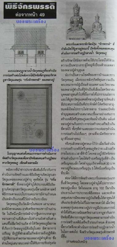 => ข้อมูลเพิ่มเติม วัตถุมงคล พิธี จักรพรรดิ์ ๙ ยอด ได้มีข้อมูลลงให้เห็นทั้งในนิตยสารพระเครื่อง ( ข้อมูลด้านล่าง ) และหนังสือ หลวงปู่คำบุ คุตฺตจิตโต ( บูชาได้จากที่วัด ) อีกด้วย ... และที่สำคัญ ( ขอย้ำอีกทีว่า ) ผงพุทธคุณที่อุดใต้ฐานองค์พระ หลวงปู่รวบรวมและลบผงเอง ซึ่งในพระเครื่องยุคหลัง ๆ หาผงพุทธคุณแท้ ๆ แบบนี้ไม่มีแน่นอน