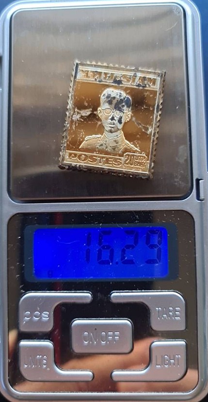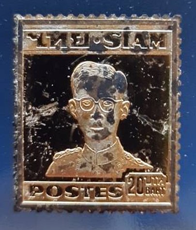 เหรียญเงินบริสุทธิ์ 999.9 แสตมป์ ร.9 สยาม ดวง 20 บาท ชุบทองคำสวิส หนา 2.2 มิล แกะสลักภาพด้วยมือ ผลิตที่ประเทศสวิตเซอร์แลนด์ น้ำหนักประมาณ 14.66 กรัม เหรียญผ่านการใช้มาดังภาพ โลหะเป็นเงินบริสุทธิ์ 99.9
