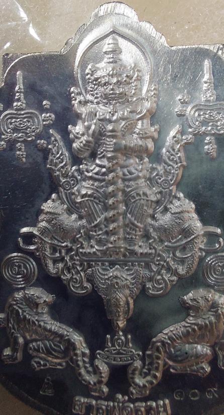 เหรียญเสมาหัวเสือ เนื้อเงิน..หลังท้าวเวสสุวรรณ หลวงพ่อพัฒน์ นครสวรรค์