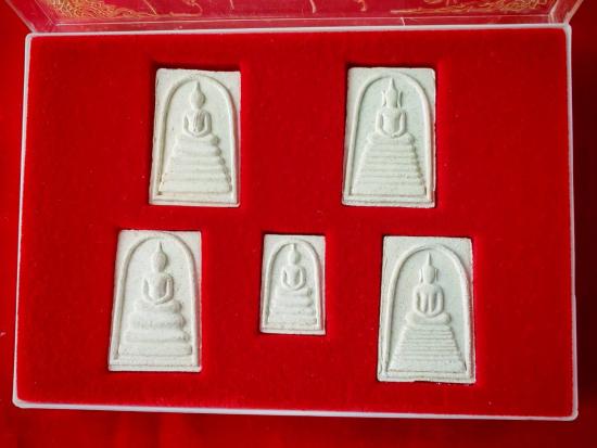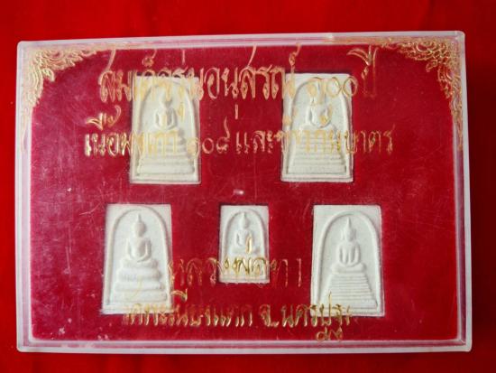 สายนครปฐม สมเด็จรุ่นอนุสรณ์ 100ปี เนื้อผงเก่า ๑๐๘และข้าวก้นบาตร ปี ๒๕๓๖ หลวงพ่อทาวัดพะเนีบงแตก จังหวัดนครปฐม จำนวน 1 ชุด 5 องค์