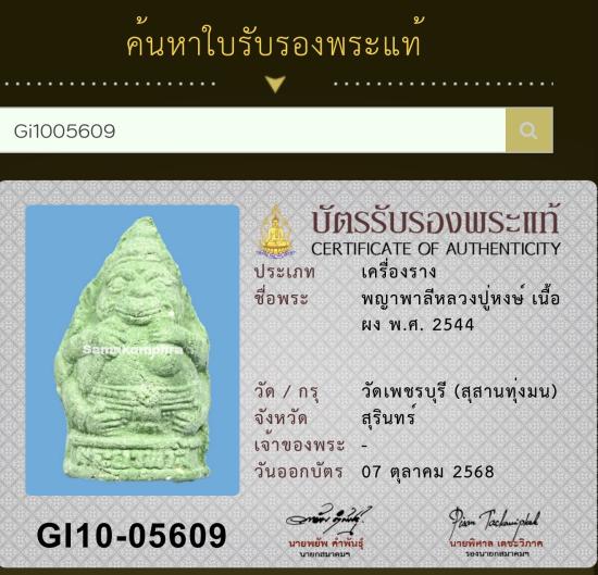 พญาพาลี หลวงปู่หงษ์ สุสานทุ่งมน เนื้อผง ปี 2544 พร้อมบัตรรับรองสมาคม