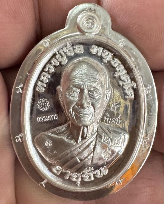 เหรียญหลวงปู่จื่อ พนฺธมุตฺโต วัดเขาตาเงาะ จ. ชัยภูมิ รุ่นอายุยืน81 เนื้อเงินกรรมการพิเศษไม่ตัดปีกหลักยันต์ และหชังแบบ9 รอบ หลังยันต์สร้าง50เหรียญ หลังแบบสร้าง30เหรียญ หมายเลฃ28 1คู่มีกล่องครับ