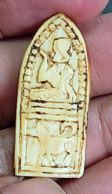 พระพุทธหลังนางกวัก(ปีจอ) เนื้องาแกะ มีจารที่ขอบฐาน