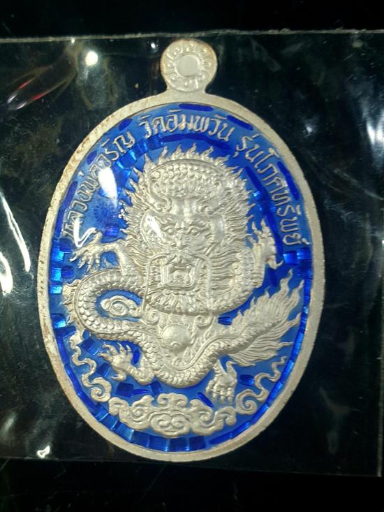 เหรียญรูปไข่ "เนื้อเงินลงยาสีแดง" ล.พ.จรัญ วัดอัมพวัน สิงห์บุรี ด้านหลังลงยาสีน้ำเงิน