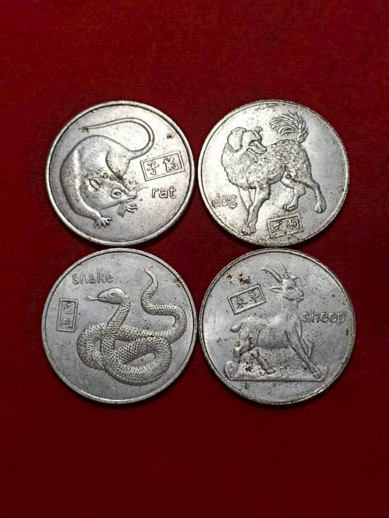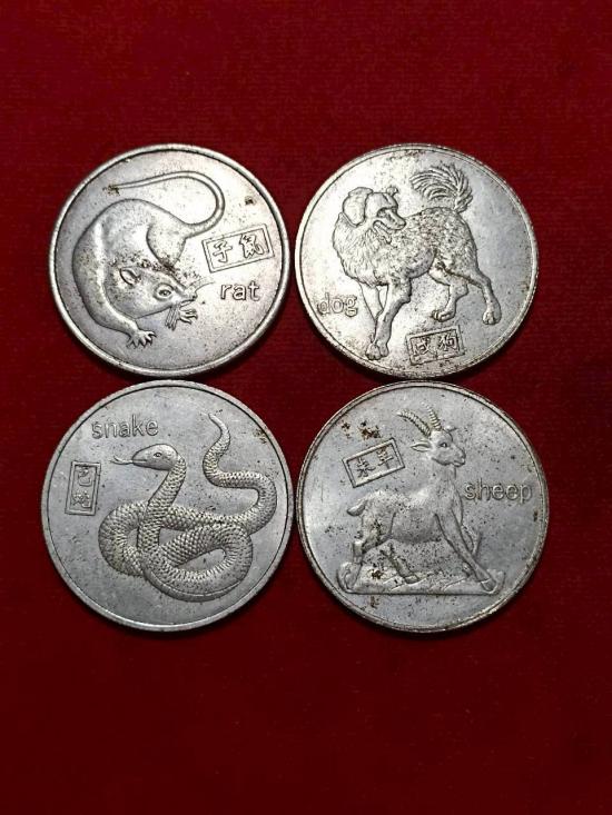 เหรียญนักษัตรจีน 4 เหรียญ คนจีนนิยมพกเป็นเครื่องรางเพื่อเสริมดวงชะตาและนำมาซึ่งโชคลาภและความมั่งคั่งร่ำรวย แสดงถึงความเจริญรุ่งเรืองและเพิ่มโชคลาภและ แก้ชง