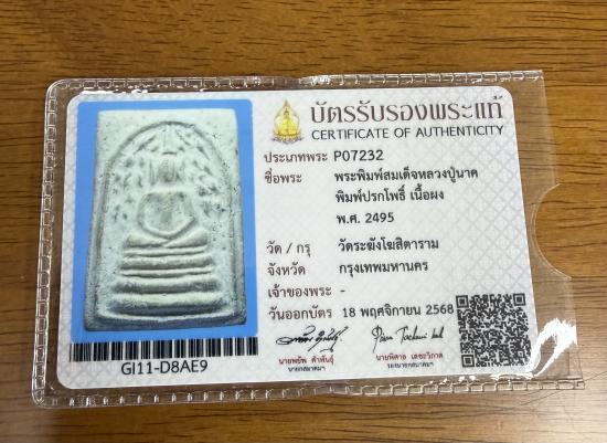 สมเด็จหลวงปู่นาค วัดระฆัง เนื้อผง ปี 2495 บัตรรับรองสมาคม
