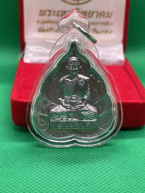 เหรียญพิมพ์ใบโพธิ์ รุ่นสุขในหัวใจ2 ปี2558 เนื้อตะกั่ว ฝังเพชร (มาสเตอร์พีช) 1/1 มีกล่อง
