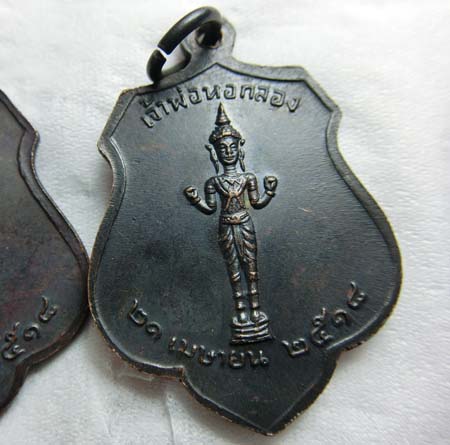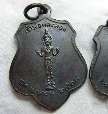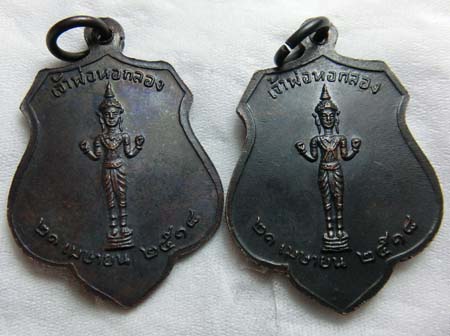 เหรียญพระหลักเมืองกรุงรัตนโกสินทร์ หลังเจ้าพ่อหอกลอง ปี2518 สวยเดิม 2 เหรียญครับ