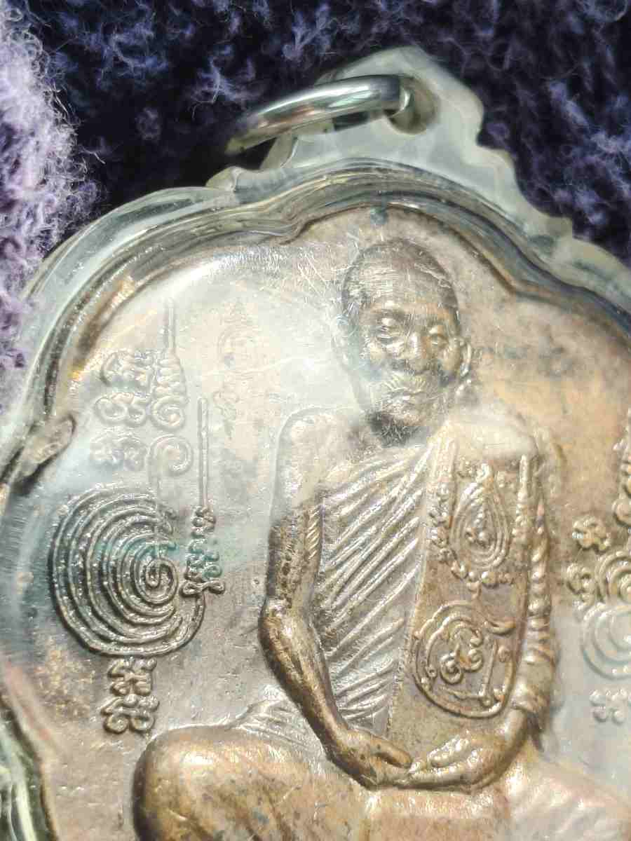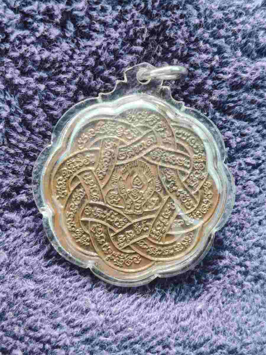 เหรียญยันต์ตะกร้อหลวงปู่กาหลง เขี้ยวแก้ว รุ่นไตรมาส ปี 50 เนื้อทองแดง จ.สระแก้ว บล็อควงเดือน