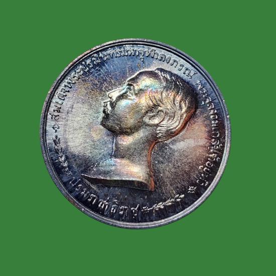 เหรียญ เนื้อเงิน รัชกาลที่ 5 หลวงพ่อเกษม เขมโก พ.ศ.2535 สภาพสวยตามรูป