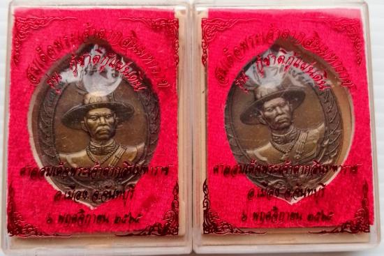 เคาะเดียวแดง.....(1) เหรียญสมเด็จพระเจ้าตากสินฯ หลังพญาครุฑ รุ่นกู้ชาติกู้แผ่นดิน ศาลสมเด็จพระเจ้าตากสินมหาราช จังหวัดจันทบุรี ปี 65 จำนวน 2 เหรียญ พร้อมกล่องเดิม