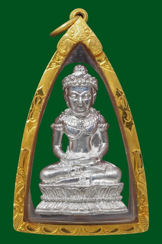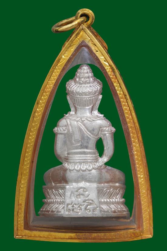 พระกริ่งจอมสุรินทร์ มหาเศรษฐี หลวงปู่หงษ์ เนื้อเงินก้นนวะโลหะ เลี่ยมทอง