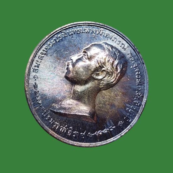 เหรียญ เนื้อเงิน รัชกาลที่ 5 หลวงพ่อเกษม เขมโก พ.ศ.2535 สภาพสวยตามรูป