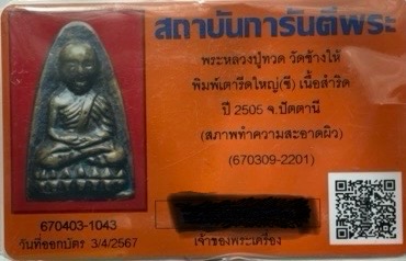 หลวงปู่ทวด พิมพ์เตารีดใหญ่(ซี) เนื้อสำริด ปี2505