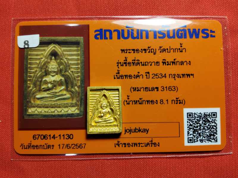 พระของขวัญ วัดปากน้ำ รุ่นซื้อที่ดินถวาย พิมพ์กลาง ปี2534 กรุงเทพฯ เนื้อทองคำ