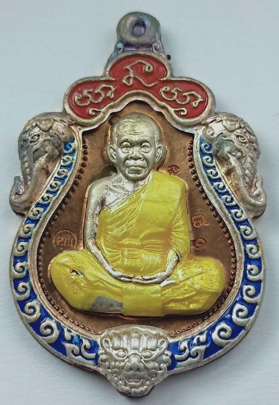 เหรียญเสมา "เลื่อนขั้น91" หลวงพ่อคูณ ปี57 เนื้อนวะโลหะ ประกบองค์เงิน/กนกเงินลงยา เบอร์ 81 พร้อมกล่องครับ