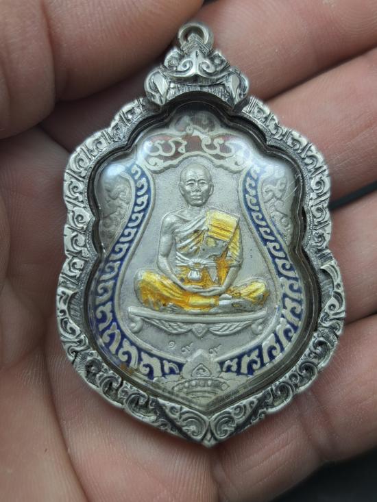เหรียญเสมาปี36เนื้อเงินลงยาเลข199เลือมเงินพร้อมใช้รับประกันแท้ครับ