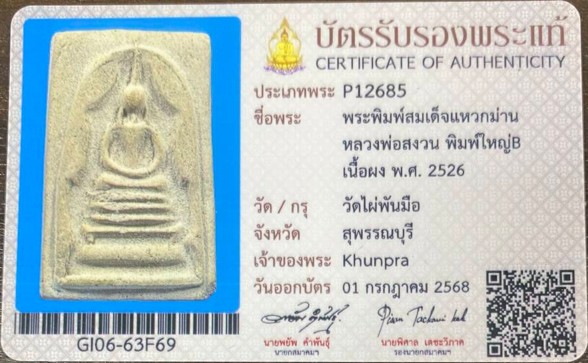 พระพิมพ์สมเด็จแหวกม่าน พิมพ์ใหญ่ หลวงพ่อสงวน วัดไผ่พันมือ จ. สุพรรณบุรี ปี พ.ศ. 2526