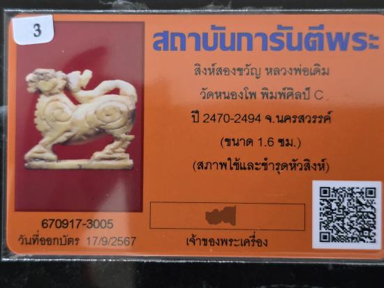 สิงห์หลวงพ่อเดิม วัดหนองโพธิ์ สภาพน่าใช้ พร้อมบัตรรับรอง