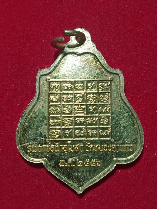 **เคาะเดียวแดง**เหรียญหลวงพ่อกวย หลังยันต์ รุ่นยกช่อฟ้าอุโบสถ วัดหนองตาแก้ว ปี 56 เนื้อกะไหล่ทอง