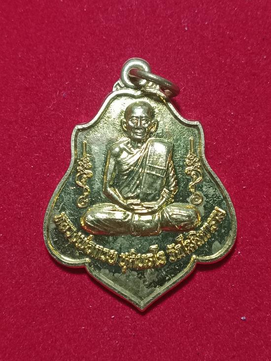 **เหรียญหลวงพ่อกวย** หลังยันต์ รุ่นยกช่อฟ้าอุโบสถ วัดหนองตาแก้ว ปี 56 เนื้อกะไหล่ทอง